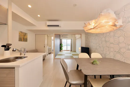 คอนโดมิเนียม 1LDK ที่สามารถเลือกประเภทห้องได้ระหว่างห้องสไตล์ญี่ปุ่นหรือสไตล์ตะวันตก มีพื้นที่กว้างขวางสำหรับผู้เข้าพัก 4-6 คน เหมาะสำหรับครอบครัวหรือกลุ่มเพื่อนที่เดินทางด้วยกัน พร้อมสิ่งอำนวยความสะดวก เช่น ห้องครัวและอุปกรณ์ที่จำเป็นต่อการใช้ชีวิต ให้คุณพักผ่อนได้อย่างสบายเหมือนอยู่บ้าน
