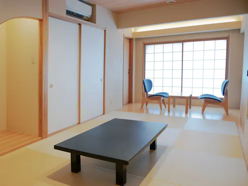 หลังจากผ่อนคลายร่างกายในห้องอาบน้ำที่เราภูมิใจแล้ว โปรดพักผ่อนในห้องสไตล์ญี่ปุ่นที่มีบรรยากาศสงบ