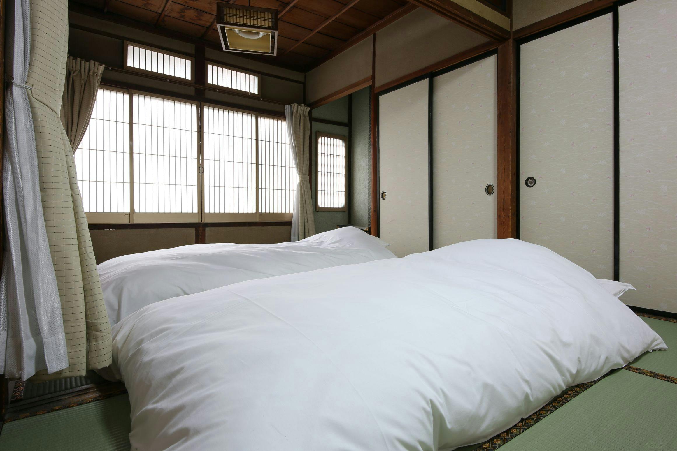 ในตอนกลางคืน ท่านจะพักผ่อนในห้องพักที่มีเสื่อทาทามิและฟูกนอน เพลิดเพลินกับความเงียบสงบของสวนขณะพักผ่อนอย่างสงบ