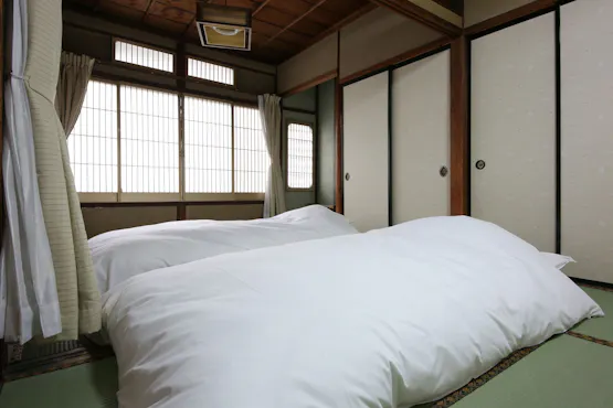 ที่พักในย่านเมืองเก่าฮิดะทาคายามะ คุณสามารถเพลิดเพลินกับช่วงเวลาผ่อนคลายที่ที่พักหลักที่มีประวัติศาสตร์ยาวนานถึง 140 ปี พักผ่อนบนฟูกในห้องพักแบบเสื่อทาทามิและสัมผัสความเงียบสงบของสวน มีห้องพักให้เลือกถึงห้าประเภท เหมาะสำหรับการเดินทางแบบครอบครัวหรือกลุ่มเล็ก ๆ สำหรับมื้อเย็น คุณสามารถลิ้มลองอาหารพื้นเมืองและอาหารมังสวิรัติได้