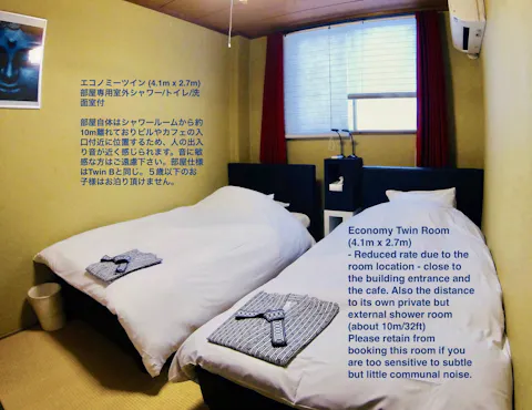 | เด็ก ๆ | คุณสามารถเข้าพักได้ สำหรับลูกค้าที่เป็นเด็กประถมหรือต่ำกว่า การเข้าพักจะจำกัดเฉพาะ 4 ห้องพักแบบญี่ปุ่นบนชั้น 2 เท่านั้น |