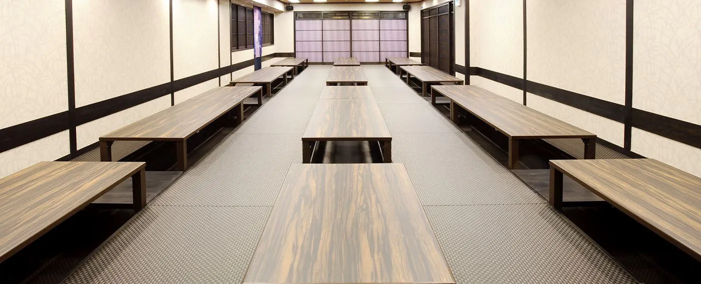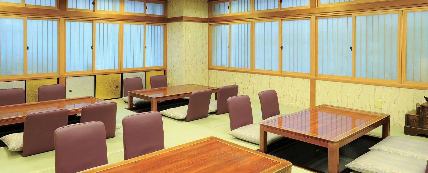 อาหารเย็นจะจัดเตรียมไว้ที่ห้องพักของท่าน ส่วนอาหารเช้าจะจัดเตรียมไว้ที่สถานที่นี้ เราจะแสดงป้ายตามหมายเลขห้องพักของท่าน กรุณาวางใจได้ ※ในกรณีจำนวนคนมาก อาจใช้สถานที่ห้อง 101 ข้างล็อบบี้ หากมีการเปลี่ยนแปลงสถานที่จะมีการแจ้งให้ทราบจากฟรอนต์ในขณะเช็คอิน <สำหรับลูกค้าที่ต้องการจัดงานเลี้ยง> เวลาทำการ 7:00~21:30 ความจุสูงสุด ประมาณ 100 ท่าน