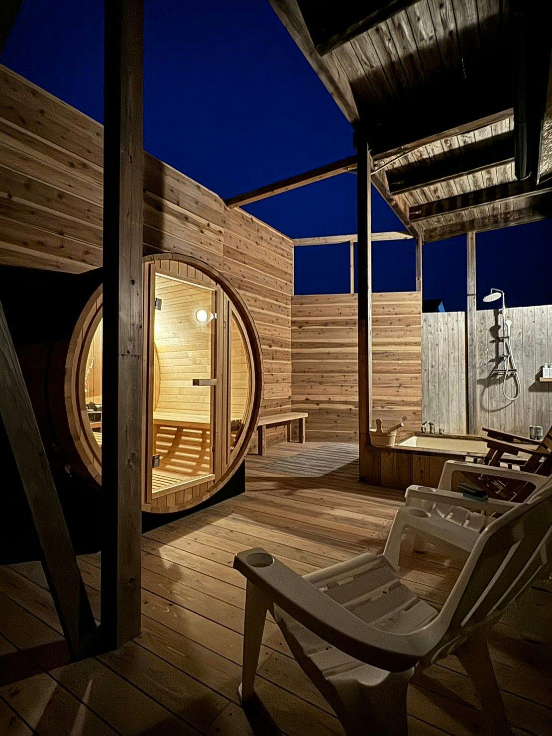 บ้านโบราณริมแม่น้ำคาโมะที่ได้รับการปรับปรุงใหม่ทั้งหมด and SEA The Terrace วันหยุดที่คุณสามารถเพลิดเพลินกับการทำอาหารพร้อมสัมผัสบรรยากาศทะเล และใช้เวลาบนระเบียงที่เปิดโล่ง ครัวเปิดที่คุณสามารถสนุกกับการทำอาหาร เลือกซื้อวัตถุดิบจากซูเปอร์มาร์เก็ตท้องถิ่นเพื่อทำอาหาร และเพลิดเพลินกับมื้อค่ำในห้องนั่งเล่น หรือจะจัดบาร์บีคิวบนระเบียงก็ได้ ระเบียงมีความเปิดโล่งมาก และหากอากาศดี คุณสามารถชมท้องฟ้าที่เต็มไปด้วยดวงดาวในยามค่ำคืน ประเภทซาวน่า: บาร์เรลซาวน่า (ฤดูร้อน 1 ชั่วโมง, ฤดูหนาว 1 ชั่วโมงครึ่ง ที่อุณหภูมิ 80°C/สูงสุด 85°C) ติดตั้งเครื่องทำความร้อน HARVIA จากฟินแลนด์ ซึ่งเป็นแบรนด์อันดับ 1 ของโลก คุณสามารถเพลิดเพลินกับการราดน้ำบนหินซาวน่าด้วยตัวเอง (Self Löyly) พร้อมกับอ่างน้ำเย็นจากน้ำธรรมชาติ และการพักผ่อนในพื้นที่ส่วนตัวที่เต็มไปด้วยธรรมชาติ เราขอรับรองประสบการณ์การผ่อนคลายที่ยอดเยี่ยม สัตว์เลี้ยงเข้าพักได้ and SEA The Terrace ยินดีต้อนรับสัตว์เลี้ยง! ใช้เวลาที่สะดวกสบายร่วมกับสัตว์เลี้ยงของคุณ <โยคะ> เรามีเสื่อโยคะเตรียมไว้ให้ เพลิดเพลินกับการฝึกโยคะบนระเบียงที่เปิดโล่งหรือในห้องนั่งเล่น