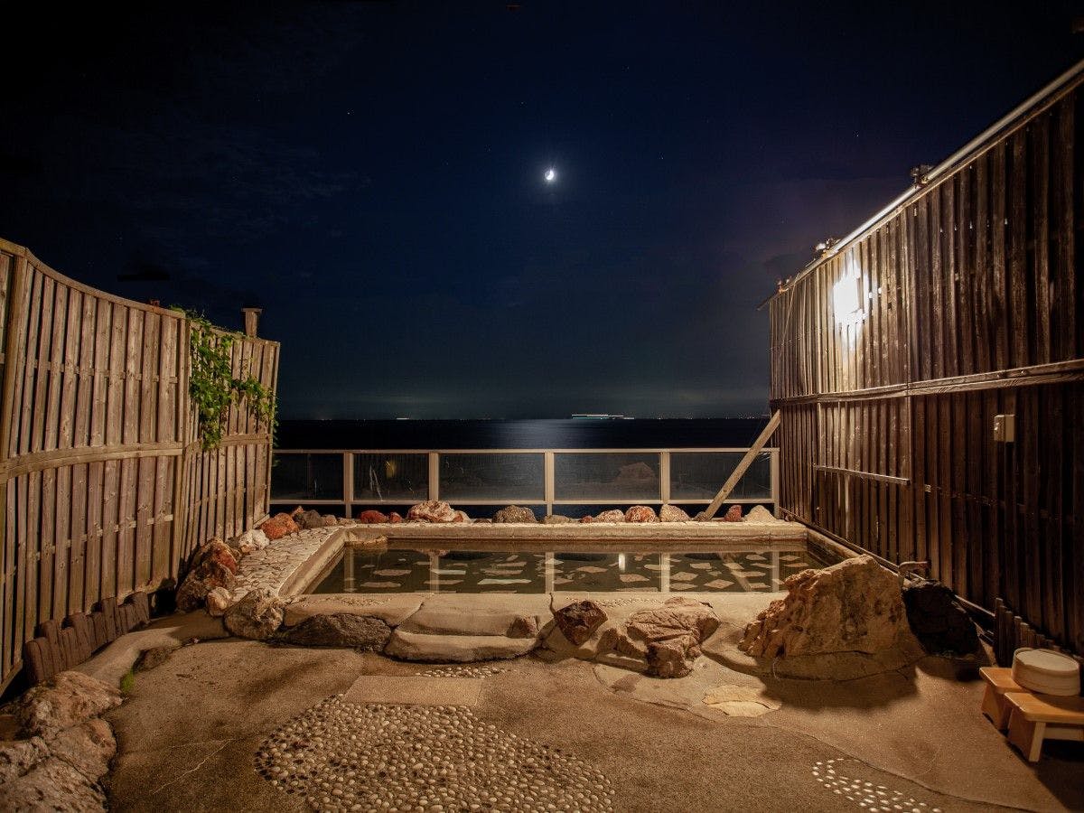 | คุณสมบัติและประโยชน์ของน้ำพุร้อน | น้ำพุร้อนทะเลจากแหล่งน้ำของตัวเองมีผลทำให้ผิวเนียนนุ่มด้วยประสิทธิภาพของโซเดียม (เกลือ) มีประสิทธิภาพยอดเยี่ยมสำหรับอาการปวดเส้นประสาท กล้ามเนื้อ ข้อต่อ โรคทางเดินอาหาร และอาการหนาวเย็น ※เกี่ยวกับการระบุแหล่งน้ำพุร้อน |