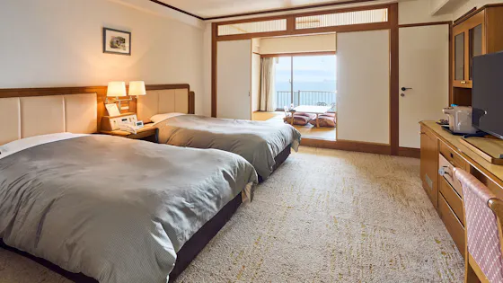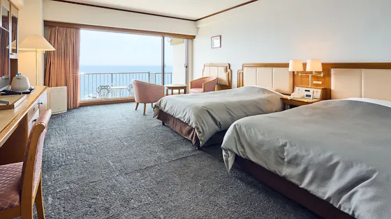 เบื้องหน้าคืออ่าวชิบุชิที่กว้างใหญ่ เมื่อพระอาทิตย์ตกดิน ท้องฟ้าจะเปลี่ยนเป็นสีแดงและกลายเป็นความมืดมิด ทุกห้องพักสามารถเพลิดเพลินกับวิวพระอาทิตย์ตกเช่นนี้ได้ ทุกห้องพักมีวิวทะเล! น้ำแร่ทะเลที่ใช้ในอ่างอาบน้ำไม่ทำให้รู้สึกเหนียวเหนอะหนะอย่างที่คาดไว้ และหลังจากอาบน้ำ ผิวจะเนียนนุ่ม! สัมผัสน้ำทะเลธรรมชาติที่อุดมไปด้วยแร่ธาตุ เพลิดเพลินกับห้องอาบน้ำขนาดใหญ่ที่มองเห็นอ่าวชิบุชิที่เปล่งประกาย อ่างอาบน้ำกลางแจ้งที่มีน้ำทะเล และสระว่ายน้ำอุ่นน้ำทะเล