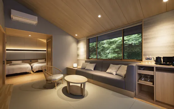 ที่พักตั้งอยู่ติดกับป่าสนฮาริโมมิอันอุดมสมบูรณ์ ฟังเสียงนกร้องพร้อมชมภูเขาไฟฟูจิอันงดงาม ท่ามกลางท้องฟ้ากว้าง อากาศบริสุทธิ์ และกลิ่นอายของธรรมชาติ พร้อมลิ้มรสอาหารไคเซกิที่เปลี่ยนเมนูทุกเดือนโดยใช้วัตถุดิบตามฤดูกาล เพื่อให้คุณได้ใช้เวลาสุดพิเศษอย่างเต็มอิ่ม