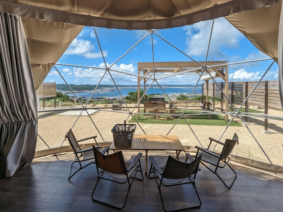จังหวัดโอกินาว่า/เมืองนันโจเพลิดเพลินกับช่วงเวลาพิเศษที่สิ่งอำนวยความสะดวกแกลมปิ้งในเมืองนันโจ เกาะหลักโอกินาวา พร้อมชมวิวที่สวยงามจากที่สูง