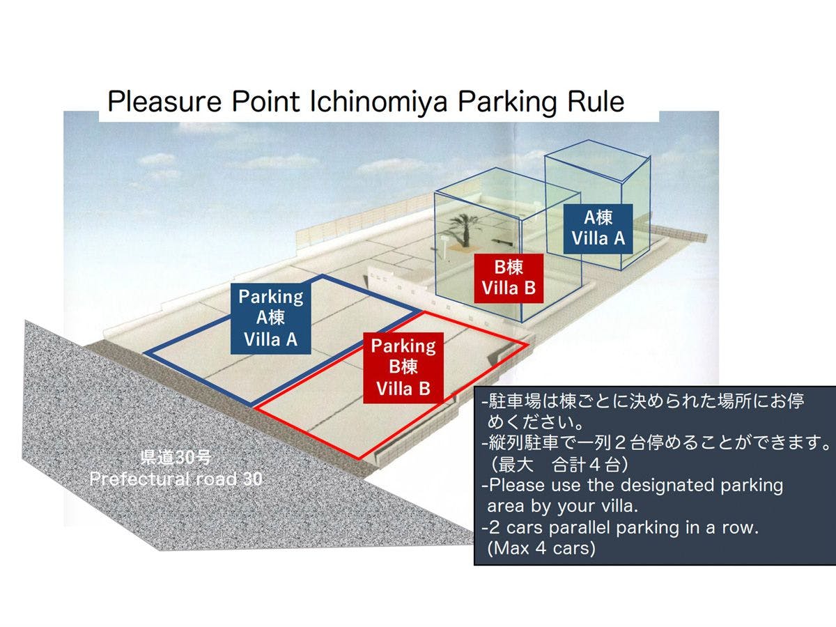 ・ค่าใช้จ่าย: ฟรีสำหรับผู้เข้าพัก ・ที่จอดรถ: ความยาวรถ --- ความกว้างของรถ --- ความสูงของรถ --- ・จำนวนที่จอดรถ: 4คัน ・บริการรับจอดรถ: ไม่มี