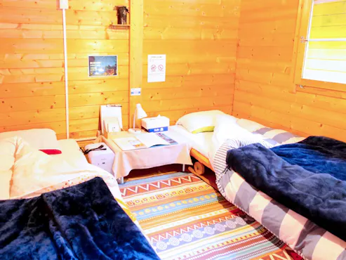 | อื่นๆ | ห้องพักไม่มีห้องน้ำและห้องอาบน้ำในตัว โดยมีการแยกชายหญิงและอยู่ในอาคารอื่น แต่ละห้องพักมีเครื่องปรับอากาศ (ทั้งร้อนและเย็น) และผ้าห่มไฟฟ้า (สำหรับฤดูหนาว) สามารถใช้ครัวส่วนกลางเพื่อทำอาหารได้ บางห้องพัก (เช่น ห้องคู่) อาจมีสัญญาณ Wi-Fi ที่ไม่ค่อยแรง |
