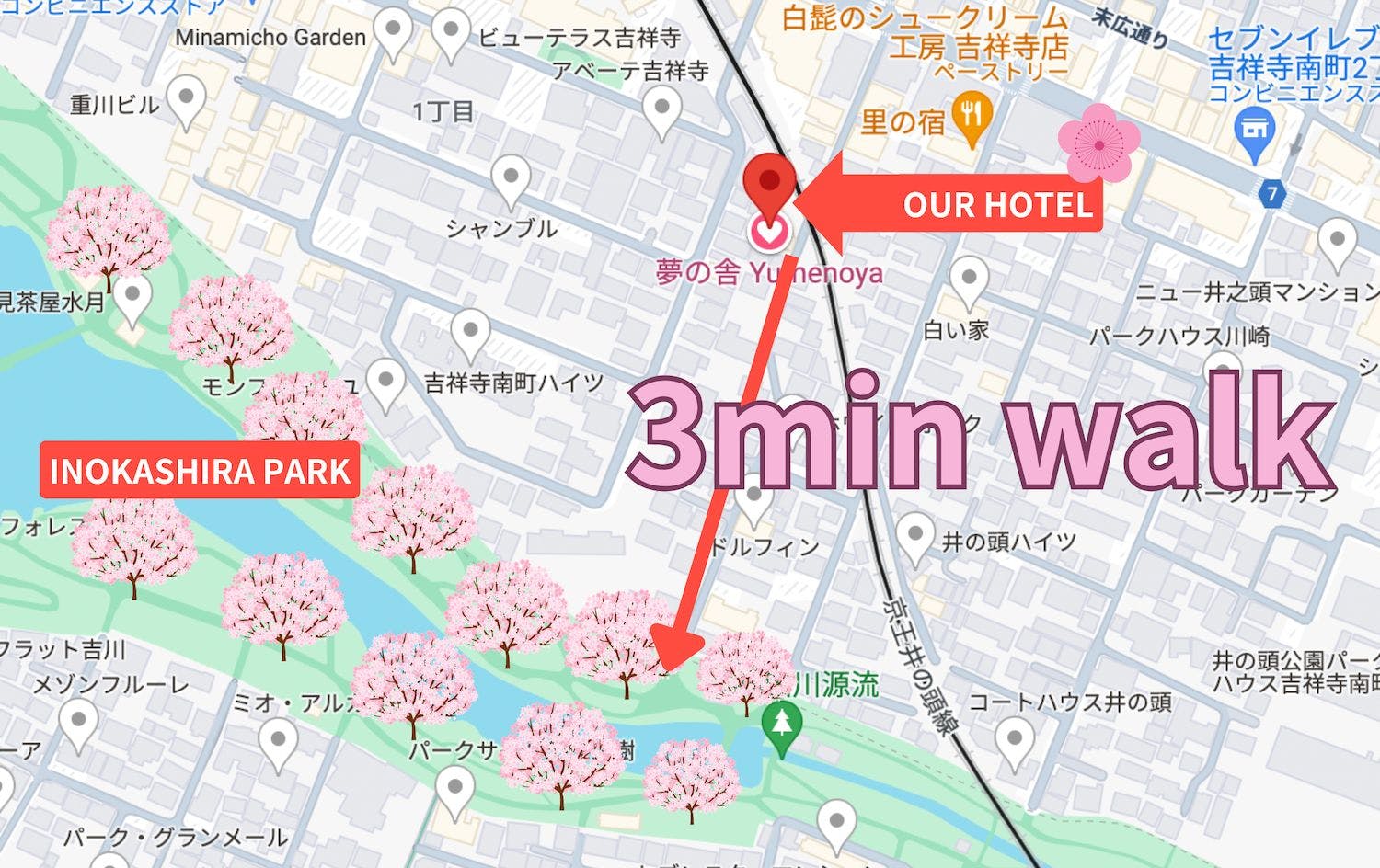 เดินประมาณ 4 นาทีจากสถานี JR Kichijoji (ทางออกทิศใต้/ทางออกสวน)