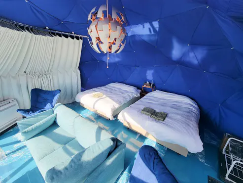 สถานที่ที่สามารถมองเห็นอ่าวอิเสะได้อย่างเต็มตา และในยามค่ำคืนสามารถเพลิดเพลินกับวัตถุดิบหลากสีสันจากชิตะใต้ท้องฟ้าที่เต็มไปด้วยดวงดาว สิ่งอำนวยความสะดวก "-SORA-BASE" ได้เปิดให้บริการในเดือนกรกฎาคม 2023 มีเต็นท์โดมที่มีการตกแต่งภายในอย่างหรูหรา และเต็นท์ที่ใช้ในแคมป์จริงที่มีความสมบูรณ์แบบติดตั้งอยู่ตลอดเวลา พร้อมทั้งมีเครื่องปรับอากาศในทุกเต็นท์ ทำให้สามารถพักผ่อนได้อย่างสบายตลอดทั้งปี การเดินทางสะดวกสบายเพียง 60 นาทีโดยรถยนต์จากนาโกย่า ทำให้สามารถเพลิดเพลินกับกิจกรรมกลางแจ้งได้อย่างง่ายดายแม้หลังเลิกงานโดยไม่ต้องเตรียมตัวมาก นอกจากนี้ยังสามารถเข้าใช้บริการน้ำพุร้อนธรรมชาติ "มารุฮะอุเมะโนะยุ" ได้ไม่จำกัด เพื่อผ่อนคลายความเหนื่อยล้าและพักผ่อนอย่างสบายใจ! หลีกหนีความวุ่นวายของเมืองใหญ่ และใช้เวลาที่แสนพิเศษพร้อมชมวิวที่งดงามในบรรยากาศที่เงียบสงบ