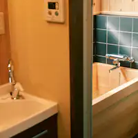 ที่พักของเรามีห้องอาบน้ำส่วนตัวพร้อมซาวน่าให้บริการ ผู้เข้าพักสามารถใช้บริการได้ฟรี 1 รอบ (45 นาที) ต่อการเข้าพัก ซาวน่าสามารถเลือกได้ตามชอบระหว่าง “ซาวน่าแห้ง” และ “มิสต์ซาวน่า” สามารถเพิ่มจำนวนรอบได้โดยมีค่าบริการเพิ่มเติม เพื่อให้คุณเพลิดเพลินได้อย่างเต็มที่ เรายังมีรูมเซอร์วิสนำเครื่องดื่มไปส่งถึงห้องเปลี่ยนเสื้อผ้า ขอเชิญใช้เวลาตามใจในบรรยากาศเงียบสงบที่เป็นส่วนตัวอย่างแท้จริง