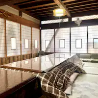 คิโยมิซึเท 1F & เทอร์เรซ สำหรับวันพักผ่อนแบบส่วนตัว นำอาหารและเครื่องดื่มมาเองได้ตามสบาย มีอุปกรณ์แก๊ส BBQ และอุปกรณ์ปาร์ตี้หม้อไฟให้ยืมฟรี คฤหาสน์เก่าแก่ใจกลางเมืองปราสาทที่เงียบสงบ รายล้อมด้วยสวนและสวนสาธารณะ ปรับปรุงเพื่อการท่องเที่ยวแบบกลุ่ม พร้อมการต้อนรับอย่างอบอุ่นในแบบกิจการครอบครัว มีห้องโถงใหญ่ขนาด 50 เสื่อทาทามิ ห้องอาหารสไตล์เรโทรยุคโชวะ และพื้นที่โดมะพร้อมโต๊ะปิงปอง ห้องนอนจัดได้ยืดหยุ่น จำกัดเพียงวันละ 1 กลุ่ม จึงพักผ่อนได้โดยไม่ต้องกังวลเรื่องรอบข้าง ไม้คุณภาพเยี่ยมที่เก็บจากภูเขาโจโมะซันซัง จังหวัดกุนมะ ช่วยปลอบประโลมทั้งกายและใจ ใกล้ที่พักมีน้ำพุร้อนแบบไปเช้าเย็นกลับหลายแห่ง เหมาะเป็นฐานสำหรับท่องเที่ยว ทาคาซากิ มาเอะบาชิ อิคาโฮะ และฮารุนะ ใช้เวลาขับรถประมาณ 25 นาที จากทางออกมาเอะบาชิ IC ประมาณ 25 นาที จากสถานี JR ทาคาซากิ เดินทางด้วยรถบัสหรือรถยนต์ประมาณ 27 นาที รองรับสูงสุด 20 ท่าน