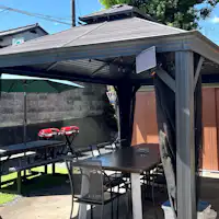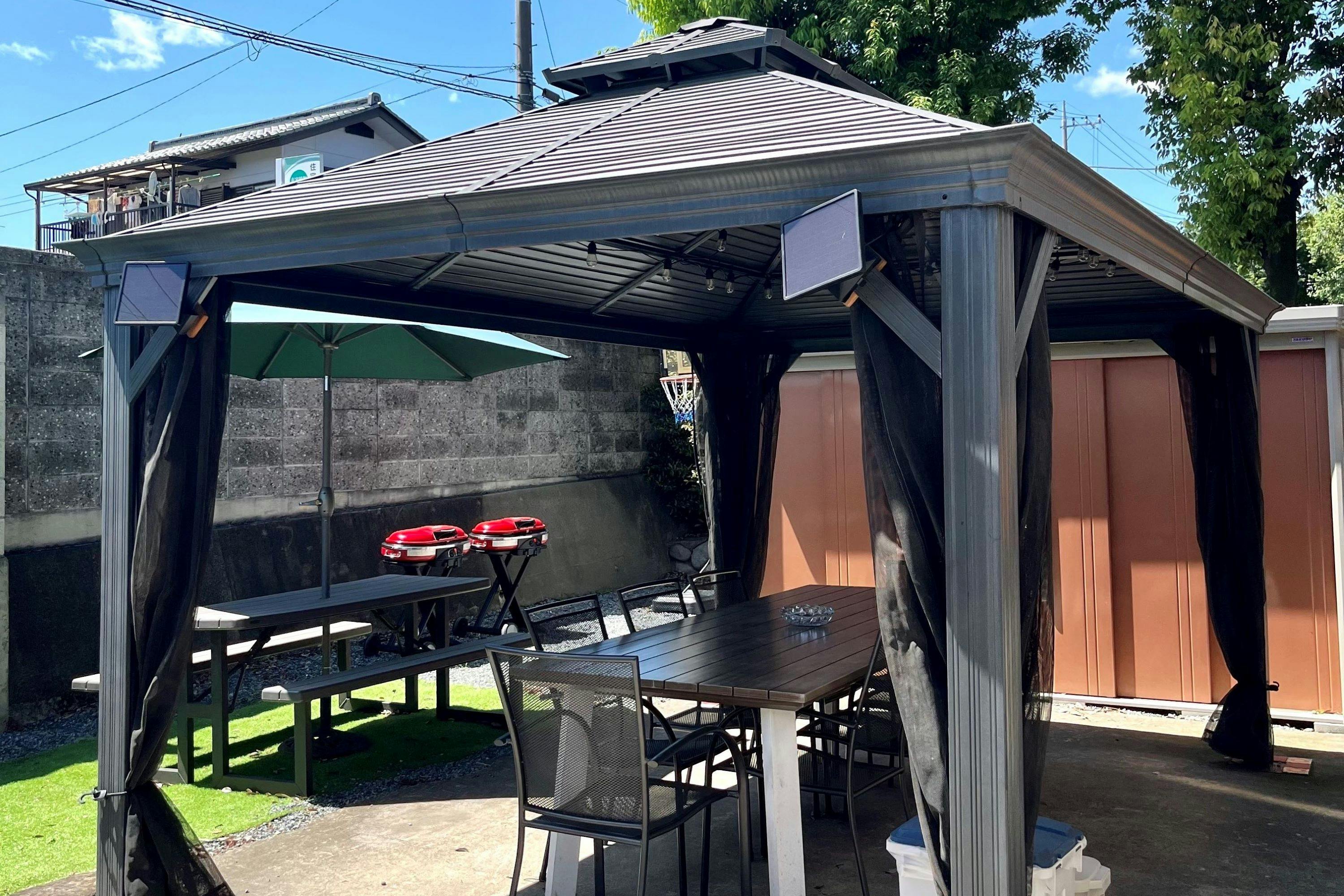 เราเตรียมพื้นที่สำหรับบาร์บีคิวที่ทุกคนเพลิดเพลินได้อย่างสะดวกสบาย มีศาลาและทาร์ปแบบมีหลังคา จึงสนุกได้อย่างมั่นใจแม้ในวันที่ฝนตก เด็ก ๆ ก็สามารถเล่นฟองสบู่ เล่นน้ำ หรือกิจกรรมทุบแตงโมใกล้ ๆ ผู้ใหญ่ได้อย่างสนุกสนาน ด้วยสภาพอากาศที่หิมะตกน้อย จึงสามารถทำบาร์บีคิวได้ตลอดทั้งปี และในฤดูหนาวยังสามารถอุ่นตัวด้วยโต๊ะโคทัตสึพร้อมเพลิดเพลินกับอาหารได้อีกด้วย