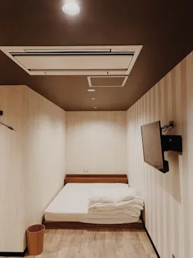 Yahoo!トラベルユー... 8/3/2026Although it is a capsule Hotel, it felt like a semi-private Room. The bed was nice and fluffy. However, there was no bath—only showers—so I couldn’t fully relax. Also, the loungewear was one-size-fits-all, but at 186 cm it was too small for me.