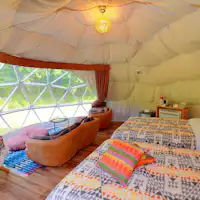 Yahoo!トラベルユー... 4/4/2026This was our first glamping experience. We chose this Plan because it was slightly more affordable compared to other Facilities. The result? Complete satisfaction! The barbecue had both quality and quantity, and we couldn't finish the dessert, so we saved it for the next day. The meat and vegetables were carefully selected, and the curry was delicious as well. Breakfast included hot sandwiches, salad, yogurt, and more—very filling! There was a small issue with a shortage of boiled eggs and ham, but it was quickly resolved without any problems. The bed in the Room felt a bit small for two adults, so we rented sleeping bags instead. It was comfortable overall with no issues of feeling cold. In the evening, we enjoyed a campfire as a family—it felt like an extraordinary experience that created wonderful memories. The bath at Enasan-so had slightly hot water but left us feeling thoroughly warmed up—so no complaints there! There were free drink services available too, and overall customer service was very attentive. This is sure to be an excellent memory-making experience!