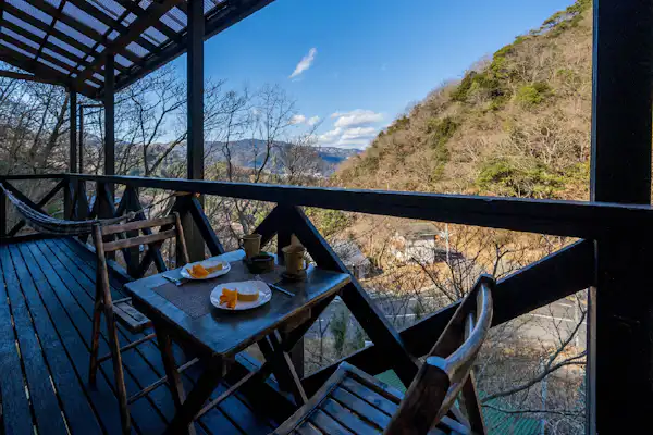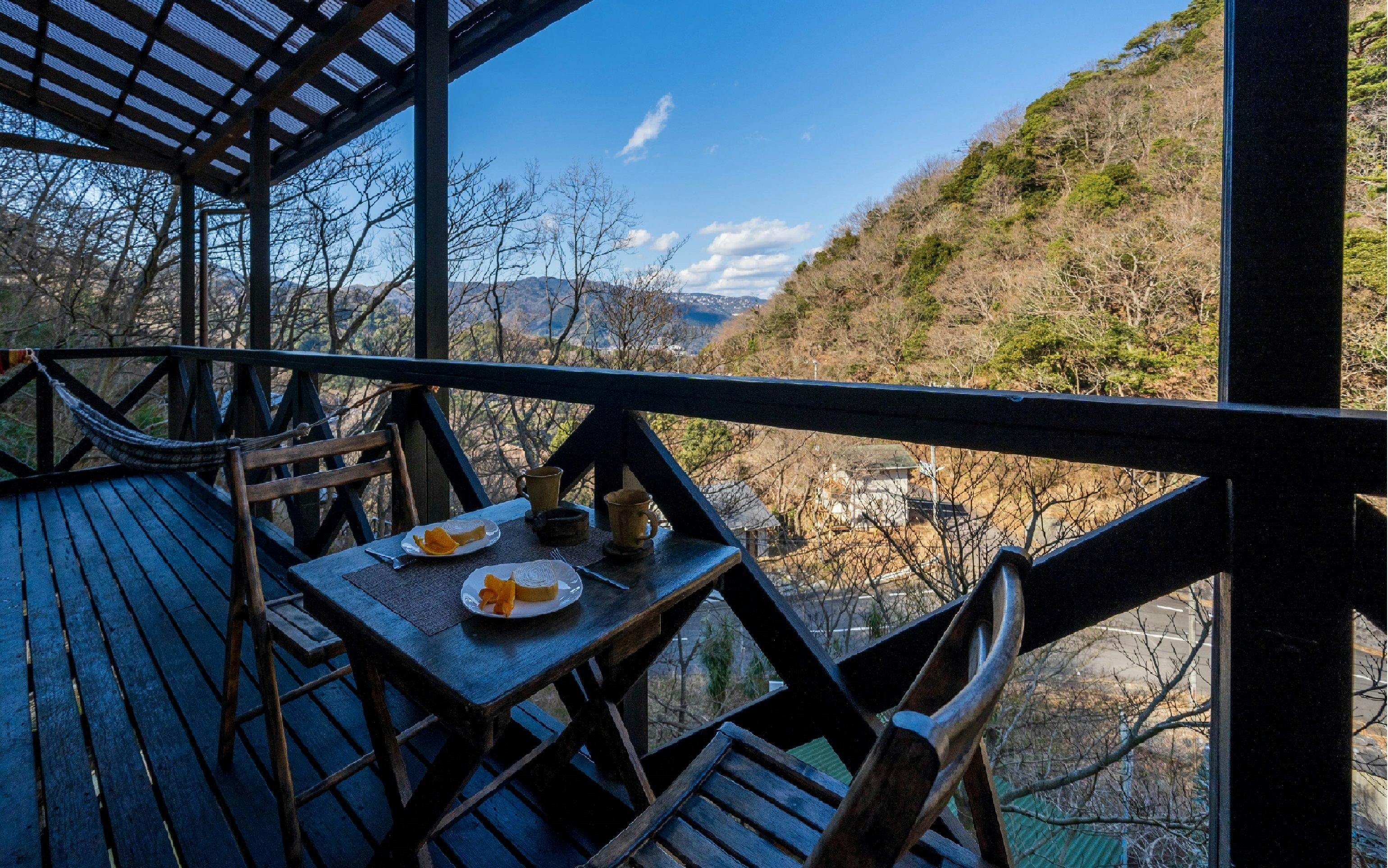 จังหวัดชิซูโอกะ/อาตามิอบอุ่นใจไปกับสัมผัสของไม้ คอทเทจสุดพิเศษพร้อมเตาผิงไม้และเปลญวน