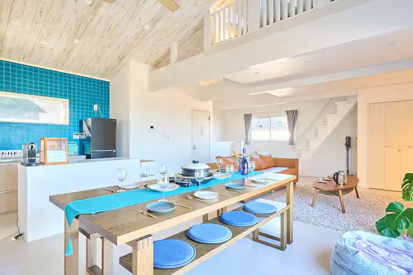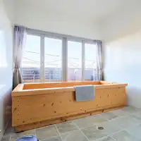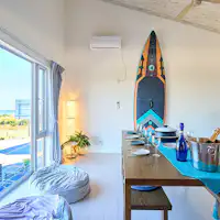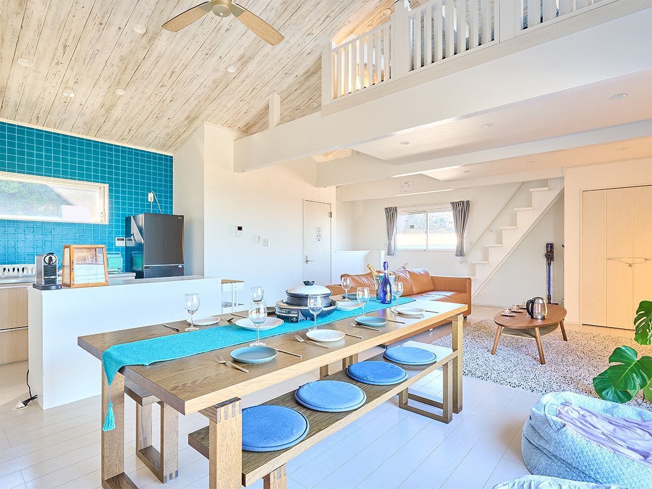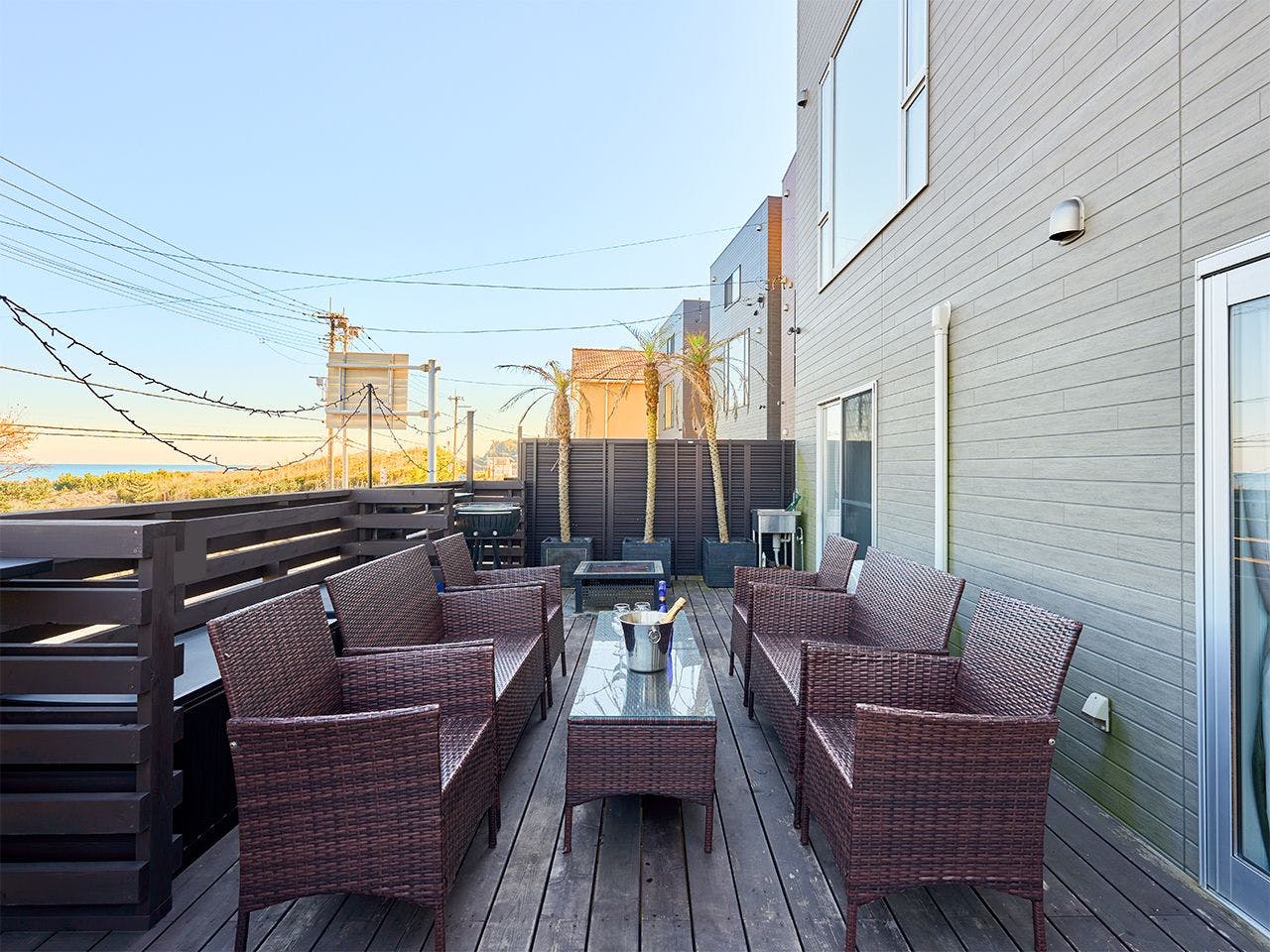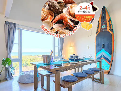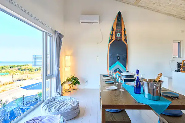 บ้านพักตากอากาศแบบให้เช่าทั้งหลังที่สามารถมองเห็นชายหาด Tsunegasaki ซึ่งเป็นสถานที่จัดการแข่งขันโต้คลื่นในโอลิมปิกโตเกียว 2021 แน่นอนว่าจะช่วยให้คุณหลีกหนีจากความวุ่นวายในเมืองได้อย่างแน่นอน ในตอนเช้า คุณยังสามารถชมพระอาทิตย์ขึ้นจากผิวน้ำทะเลที่เป็นเอกลักษณ์ของ Kujukuri ได้อีกด้วย อ่างอาบน้ำไม้ฮิโนกิขนาดใหญ่ที่สามารถแช่เท้าพร้อมกันได้ถึง 10 คน เมื่อเปิดประตูกระจกออกจนสุด จะเชื่อมต่อกับระเบียงไม้ที่ทอดยาวไปถึงทะเล ทำให้คุณสัมผัสได้ถึงความปลอดโปร่งที่ยอดเยี่ยม นอกจากนี้ บนระเบียงไม้ขนาดใหญ่ คุณยังสามารถเพลิดเพลินกับช่วงเวลาผ่อนคลายที่บาร์เคาน์เตอร์พร้อมชมวิวทะเลได้อีกด้วย ในสวนหลังบ้านยังมีสระว่ายน้ำสำหรับเด็กที่เตรียมไว้ให้เด็กๆ ได้เล่นสนุก แม้ Kujukuri จะมีภาพลักษณ์ที่โดดเด่นในช่วงฤดูร้อน แต่ก็ยังมีกิจกรรมที่สามารถเพลิดเพลินได้ในทุกฤดูกาล ขอเชิญมาสัมผัสด้วยตัวคุณเอง