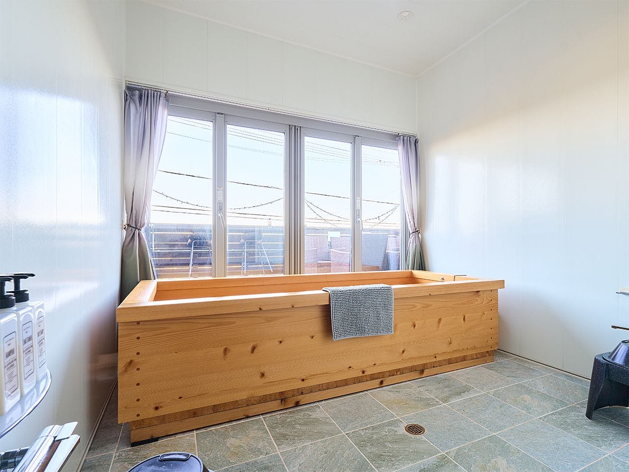 จังหวัดชิบะ/อิจิโนะมิยะ-โชอ่างอาบน้ำไม้ฮิโนกิขนาดใหญ่และระเบียงกว้างที่สามารถมองเห็นสถานที่เล่นเซิร์ฟได้อย่างชัดเจน เพลิดเพลินกับบรรยากาศรีสอร์ทด้วยเพดานสูงโปร่งและบาร์บีคิว