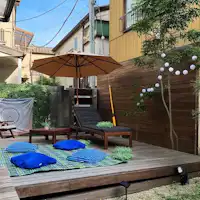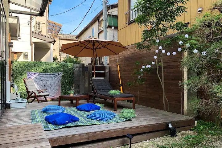 บ้านเดี่ยวสองชั้นที่กว้างขวางและทันสมัย ซึ่งสามารถสัมผัสความเป็นญี่ปุ่นได้อย่างเต็มที่ มีห้องน้ำที่ตกแต่งด้วยสวนญี่ปุ่นขนาดเล็กและภาพภูเขาไฟฟูจิ ตั้งอยู่ในทำเลที่สะดวกต่อการท่องเที่ยว เพียง 10 นาทีโดยรถไฟถึงอาซากุสะ จากห้องพักสามารถมองเห็นโตเกียวสกายทรีได้อย่างชัดเจน มีห้องครัวและห้องน้ำแยกกันทั้งชั้น 1 และชั้น 2 ทำให้เหมาะสำหรับการพักผ่อนของกลุ่มใหญ่ นอกจากนี้ยังสามารถเพลิดเพลินกับการเบลานปิ้งที่ระเบียงชั้น 1 และบาร์บีคิวที่ดาดฟ้าชั้น 2 ได้จนถึงเวลา 21.00 น. ในยามค่ำคืน สวนที่สามารถมองเห็นโตเกียวสกายทรีจะมีการประดับไฟเพิ่มความสวยงามอีกด้วย