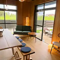 บ้านชั้นเดียวสไตล์โมเดิร์นที่โดดเด่นด้วยผนังสีดำและสนามหญ้าสีเขียว ใกล้กับทางออก Tsukuba IC และชายหาด Shirako เพียงไม่กี่นาที เดินไปทะเลเพียง 4 นาที! การเดินทางสะดวกแต่เงียบสงบ เหมาะสำหรับทั้งผู้ที่ชื่นชอบกิจกรรมทางทะเลและกีฬา หรือผู้ที่ต้องการพักผ่อนดูหนังและทำอาหารในที่พัก ที่พักนี้ใช้งานได้หลากหลาย สนามหญ้าสีเขียวสดใสสามารถใช้งานได้ตามใจชอบ จะเล่นโยคะ นอนพักผ่อน หรือเล่นน้ำและเล่นบอลกับน้องหมาก็ได้ มีเตาย่างบาร์บีคิวและเตาไฟ (ตัวเลือกเสริมที่มีค่าใช้จ่าย) รวมถึงมีฝักบัวกลางแจ้งสำหรับล้างตัวหลังจากเล่นน้ำทะเล เล่นเซิร์ฟ หรือพาน้องหมาไปเดินเล่น นอกจากนี้ บ้านหลังนี้ยังมี "ห้องแยก" ที่ทำให้ผู้ใหญ่กลับไปสู่ความรู้สึกเหมือนเด็กอีกครั้ง มีเตียงสองชั้นและเครื่องปรับอากาศ ทำให้สามารถพักผ่อนได้อย่างสบายตลอดทั้งปี