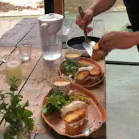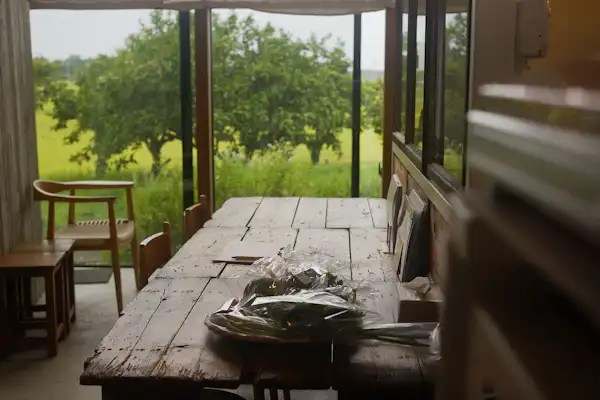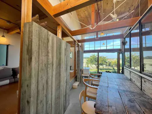 อาคารที่สร้างด้วยวัสดุธรรมชาติ เช่น ประตูหน้าต่างแบบโบราณ ผนังปูนขาว และพื้นดินผสมแกลบ สามารถทำอาหารด้วยผักตามฤดูกาลในครัว พร้อมเพลิดเพลินกับเสียงเพลงจากลำโพงไม้พิเศษ และอบอุ่นไปกับเตาผิงในฤดูหนาว สัมผัสการพักผ่อนท่ามกลางธรรมชาติที่เงียบสงบในชนบท!