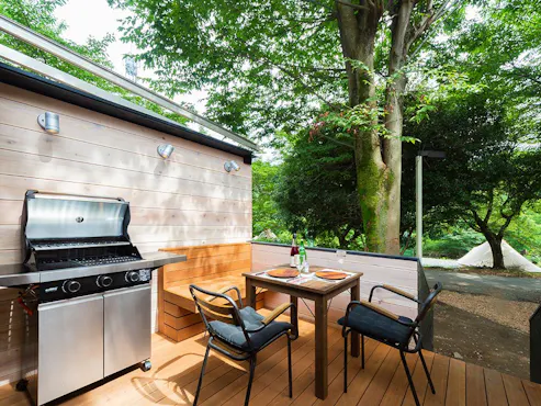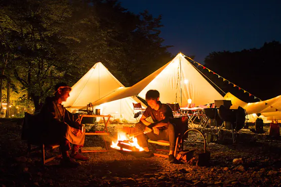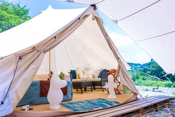จังหวัดไซตามะ/ตําบลโทกิกาวะห่างจากใจกลางเมืองเพียง 90 นาที รีสอร์ทแกลมปิ้งที่ล้อมรอบด้วยแม่น้ำและป่าไม้ มีทั้งหมด 12 ห้อง
