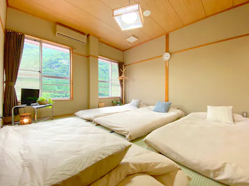 ~Best of MINPAKU คุ้มค่าที่สุดอันดับ 4 และได้รับการเสนอชื่อในหมวดโหวตทั่วไปอันดับ 6~ ■ บริการโซเม็ง! ขณะนี้เราได้เริ่มให้บริการ "โซเม็ง" ฟรีสำหรับผู้เข้าพัก! วัตถุดิบโซเม็ง, อุปกรณ์ไหลโซเม็ง, อุปกรณ์ครัว และเครื่องใช้บนโต๊ะอาหารมีเตรียมไว้ในครัว ท่านสามารถรับประทานได้ตามอัธยาศัยในระหว่างการเข้าพัก (โซเม็งที่เตรียมไว้สามารถรับประทานได้ทั้งหมด!) ในฤดูร้อนสามารถเพลิดเพลินกับโซเม็งไหล และในฤดูหนาวสามารถทำโซเม็งร้อนตามใจชอบ เราหวังว่าท่านจะสนุกสนานและเก็บเป็นความทรงจำที่ดีของการเดินทาง ■ ก่อนทำการจอง กรุณาเข้าใจข้อควรระวังเกี่ยวกับเสียงดังดังต่อไปนี้ ・ห้ามจัดปาร์ตี้ ・กรุณาใช้เวลาอย่างเงียบสงบหลังเวลา 21.00 น. ・ห้ามส่งเสียงดังทั้งภายในและภายนอกหลังเวลา 21.00 น. เนื่องจากที่ผ่านมาไม่ได้ปฏิบัติตามกฎข้างต้น เราได้รับการร้องเรียนจากผู้อยู่อาศัยใกล้เคียง รวมถึงการแจ้งตำรวจ การดำเนินงานของสิ่งอำนวยความสะดวกนี้ขึ้นอยู่กับความเข้าใจของผู้อยู่อาศัยในพื้นที่ใกล้เคียง ที่พักแห่งนี้ตั้งอยู่ในสถานที่เงียบสงบและเต็มไปด้วยธรรมชาติ ห่างจากสถานีรถไฟน้ำพุร้อนเซสโซะเคียวเพียง 8 นาทีโดยการเดิน! สามารถรองรับผู้เข้าพักได้สูงสุด 12 ท่าน มีห้องพัก 3 ห้อง เหมาะสำหรับการใช้ร่วมกันในกลุ่มเพื่อนหรือครอบครัว