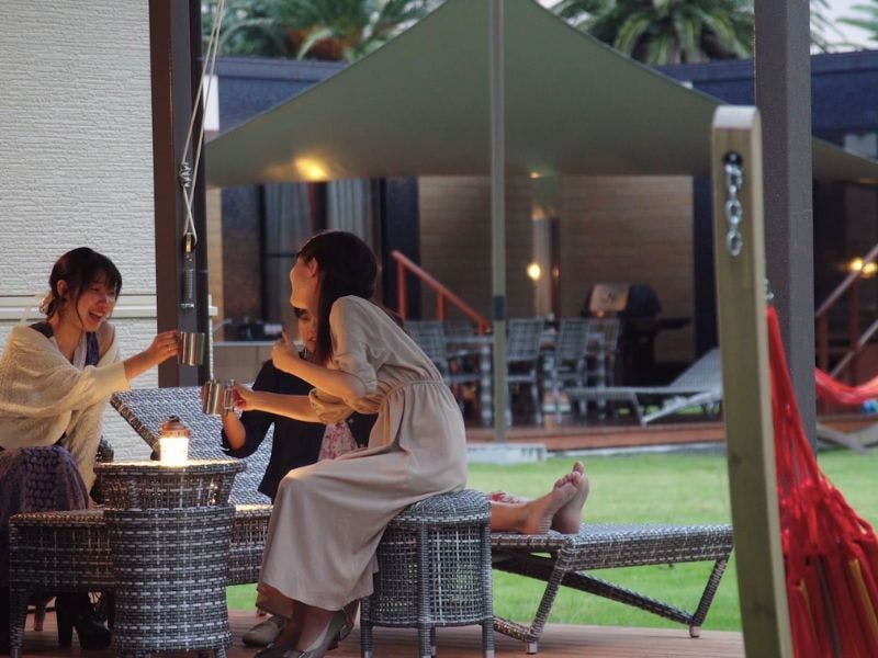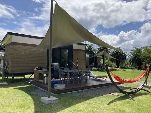 ความเป็นส่วนตัวเต็มเปี่ยม! แกลมปิ้งสุดหรูบนเกาะเล็กๆ บรรยากาศสไตล์เอเชียที่แสนเอ็กโซติกเหมือนอยู่ในเกาะทางใต้ ให้คุณลืมความวุ่นวายในชีวิตประจำวันและเพลิดเพลินกับเวลาบนเกาะที่ผ่อนคลาย สิ่งอำนวยความสะดวกครบครัน เช่น เครื่องปรับอากาศ, ปลั๊กไฟ, เตียงนอน และห้องน้ำ ทำให้แม้แต่มือใหม่ในการตั้งแคมป์ก็สามารถพักผ่อนได้อย่างสบายใจ ตอนกลางคืนชมท้องฟ้าที่เต็มไปด้วยดวงดาวพร้อมสนุกกับบาร์บีคิว และตอนเช้าเพลิดเพลินกับอาหารเช้าสุดหรู นอกจากนี้ ผู้เข้าพักยังสามารถใช้สิ่งอำนวยความสะดวกสำหรับผู้มาเยือนแบบไปกลับ เช่น อ่างน้ำร้อน "島の湯" และสวนเอเชีย "R-Asia" ได้ฟรีอีกด้วย