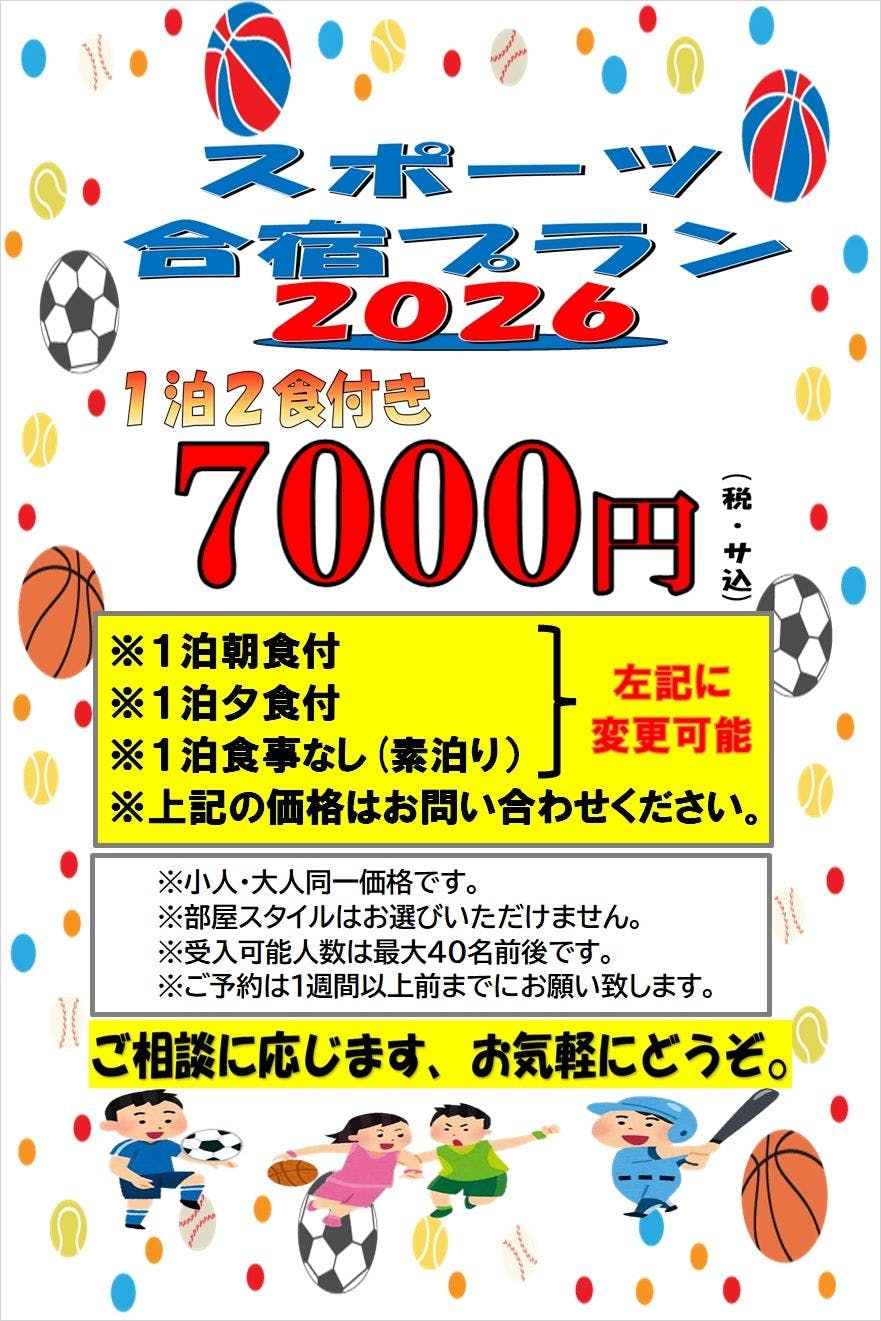 ยินดีต้อนรับการใช้บริการของ "กลุ่มองค์กรกีฬา" "นักท่องเที่ยว" "นักธุรกิจ" และ "ผู้ที่เกี่ยวข้องกับงานก่อสร้าง" มีส่วนลดพิเศษสำหรับกลุ่ม และสำหรับกลุ่มขนาดเล็กก็มีแผนราคาพิเศษ กรุณาดูหน้าแผนหรือสอบถามทางโทรศัพท์ เรามีห้องพักหลากหลายรูปแบบ เช่น บ้านไม้ล็อก ห้องพักแบบญี่ปุ่น และห้องพักแบบตะวันตก สำหรับกลุ่ม ครอบครัว หรือแม้แต่ผู้เข้าพักคนเดียว นอกจากนี้ยังมี "อ่างอาบน้ำไม้ฮิโนกิของคิโสะ" ที่สามารถทำการจองแบบเหมาห้องได้ กรุณาสอบถามเพิ่มเติม
