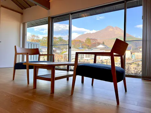 ห้องน้ำในห้องพักเป็นน้ำพุร้อนกึ่งกลางแจ้งที่สามารถมองเห็นภูเขายูฟุได้ และมีน้ำพุร้อนที่ไหลจากแหล่งน้ำโดยตรง น้ำร้อนใหม่จะถูกเติมลงในอ่างน้ำอย่างต่อเนื่อง เพลิดเพลินกับน้ำพุร้อนในพื้นที่ส่วนตัวของบ้านเช่าแบบส่วนตัว