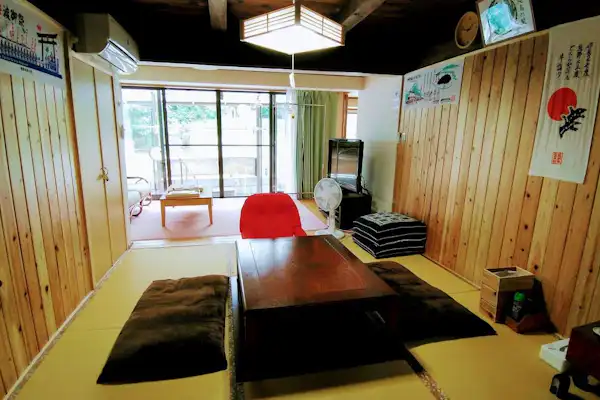 นี่คือที่พักแบบเช่าทั้งหลังสำหรับหนึ่งกลุ่มต่อวัน ตั้งอยู่ในใจกลางน้ำพุร้อนคาวายูที่มีชื่อเสียงเรื่องบ่อน้ำพุร้อนธรรมชาติ คุณสามารถเล่นน้ำในแม่น้ำด้านหน้าและขุดริมฝั่งแม่น้ำเพื่อสร้างบ่อน้ำร้อนกลางแจ้งของคุณเอง ที่พักมีบ่อน้ำพุร้อน และคุณสามารถนำวัตถุดิบมาปิ้งย่างบนระเบียงได้ ที่เคาน์เตอร์บาร์ยังสามารถสนุกกับการร้องคาราโอเกะได้อีกด้วย ขอเชิญมาที่ที่พักท่องเที่ยวชิบะที่น้ำพุร้อนคาวายู ที่ที่คุณสามารถเพลิดเพลินกับทั้งที่พักและแม่น้ำจนหนึ่งคืนอาจไม่เพียงพอ