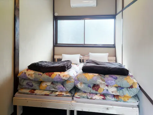 ที่พักของเราเดิมเป็นโรงงานทอผ้าไหมญี่ปุ่นที่เราได้ปรับปรุงใหม่ให้กลายเป็นที่พักราคาประหยัด และเริ่มต้นใหม่อีกครั้ง นักเดินทางทั้งในประเทศและจากทั่วโลกมาพักผ่อนที่นี่ โดยมีโอกาสพบปะและแลกเปลี่ยนประสบการณ์กันอย่างอบอุ่นในช่วงเวลาที่อยู่ร่วมกัน ที่พักของเรามีเพียง 4 ห้องพักเท่านั้น เป็นที่พักขนาดเล็กแต่เต็มไปด้วยความอบอุ่น เรามีห้องพักแบบญี่ปุ่นดั้งเดิม และห้องส่วนตัวแบบตะวันตกพร้อมเตียงให้เลือก พื้นที่ส่วนกลางกว้างขวาง มีการจัดเตรียมหนังสือการ์ตูนและหนังสือนิทานไว้สำหรับผู้เข้าพัก นอกจากนี้ยังมีครัว ตู้เย็น ไมโครเวฟ ฟูก ผ้าปูเตียง และเครื่องปรับอากาศครบครัน ให้คุณรู้สึกเหมือนอยู่บ้านของตัวเอง