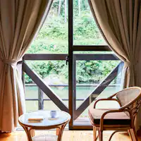 The riverside view was stunning, providing a relaxing experience surrounded by nature. The newly built annex where I stayed was comfortable, clean, and pleasant. Dinner was hearty with a variety of menu options, and the venison curry served at breakfast was delicious and highly satisfying. The onsen facilities were excellent; I enjoyed both the spacious onsen at the adjacent Quaterme Hosenbo and the morning bath in the detached area of the accommodation. The free drink service (coffee, juice, etc.) within the facility was a delightful touch. Wi-Fi connectivity was stable, making it suitable for business use as well. With its spacious grounds, this accommodation is also family-friendly. Located in a quiet mountain area rich in nature, guests can enjoy soothing experiences such as listening to river streams, stargazing, or hearing small animals' calls—offering an escape from urban life.