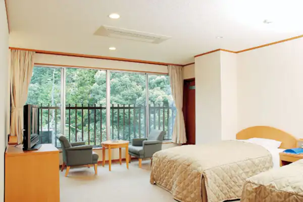 หุบเขานิบุกาวะที่ได้รับเลือกให้เป็นหนึ่งใน "100 ทิวทัศน์ธรรมชาติของเอฮิเมะ" "นิบุกาวะออนเซ็น ไคราคุโซ" ตั้งอยู่ตามแนวหุบเขาลึกนี้ ฤดูใบไม้ผลิชมดอกซากุระ ฤดูใบไม้ร่วงชมใบไม้เปลี่ยนสี ฤดูร้อนฟังเสียงประสานของกบแม่น้ำ อาหารเย็นมีอาหารท้องถิ่นเช่นหม้อไฟอินโอบุตะและอาหารทะเลจากทะเลเซโตะ น้ำพุร้อนเป็นน้ำพุอัลคาไลน์ที่มีเรดอนสูง อ่อนโยนต่อผิวของคุณ ลืมความวุ่นวายในชีวิตประจำวันและผ่อนคลายอย่างสบายใจ