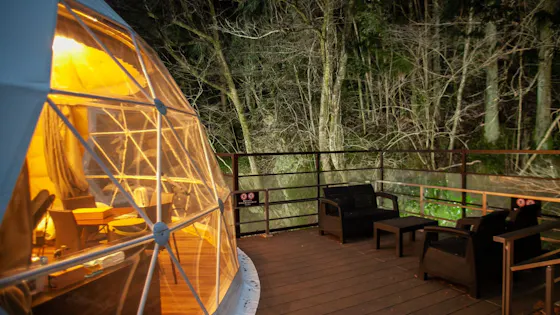 Yahoo!トラベルユー... 12/4/2026I stayed to experience glamping with my dog. The room was very lovely, and I had a relaxing time—it was amazing. However, there was no handwashing area inside the room, so I had to go to the restroom; it would have been nice to have one nearby. The meals were truly exceptional BBQs, not only with delicious meat but also tasty river fish. There were also paella and soup curry, which showed thoughtful preparation and were very enjoyable and delicious. Breakfast was served at an outdoor table, and I could enjoy it wonderfully. The onsen made my skin smooth, and I had a pleasant bath experience. The sauna I reserved was also very comfortable. Everything about the stay was excellent, allowing me to spend an incredible time here. The staff members were polite, friendly, and easy to talk with. The coffee tasted great too! Thank you so much!