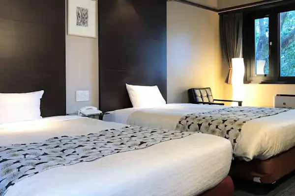 Yahoo!トラベルユー... 7/11/2025It was the third night of our Kyushu trip. The hotel was stylishly located on a chic tree-lined street. There was a parking lot nearby, and even large vehicles could be parked. The reception staff were kind and pleasant. The room was elegant, and the facilities were well-equipped. We stayed in a twin room, which was spacious, and the refrigerator was large!