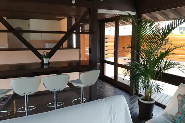 ที่พักที่เต็มไปด้วยความรู้สึกเปิดโล่ง มีระเบียงไม้แบบเปิดและสวนกว้างขวาง สามารถเช่าทั้งหลังเพื่อความเป็นส่วนตัว เพลิดเพลินได้ทั้งแบบกลุ่มหรือครอบครัว ที่ระเบียงไม้สามารถใช้จากุซซี่ ทำบาร์บีคิว หรือก่อกองไฟในสวนได้ ด้วยสวนที่กว้างขวาง สามารถนำเต็นท์มาตั้งได้ ภายในบ้านสามารถเพลิดเพลินกับภาพขนาด 100 นิ้วผ่านโปรเจคเตอร์มือถือ มีเซเว่นอีเลฟเว่นและร้านซักผ้าหยอดเหรียญที่เปิด 24 ชั่วโมงอยู่ห่างเพียง 50 เมตร บริเวณใกล้เคียงมีร้านอาหารอร่อยตั้งแต่ญี่ปุ่นจนถึงอิตาเลียนในระยะเดินถึง ซากุระและทุ่งดอกนาโนะฮานะในงานเทศกาลมินามิอยู่ในระยะเดินถึง และทุ่งดอกนาโนะฮานะอยู่ใกล้มาก