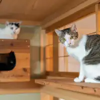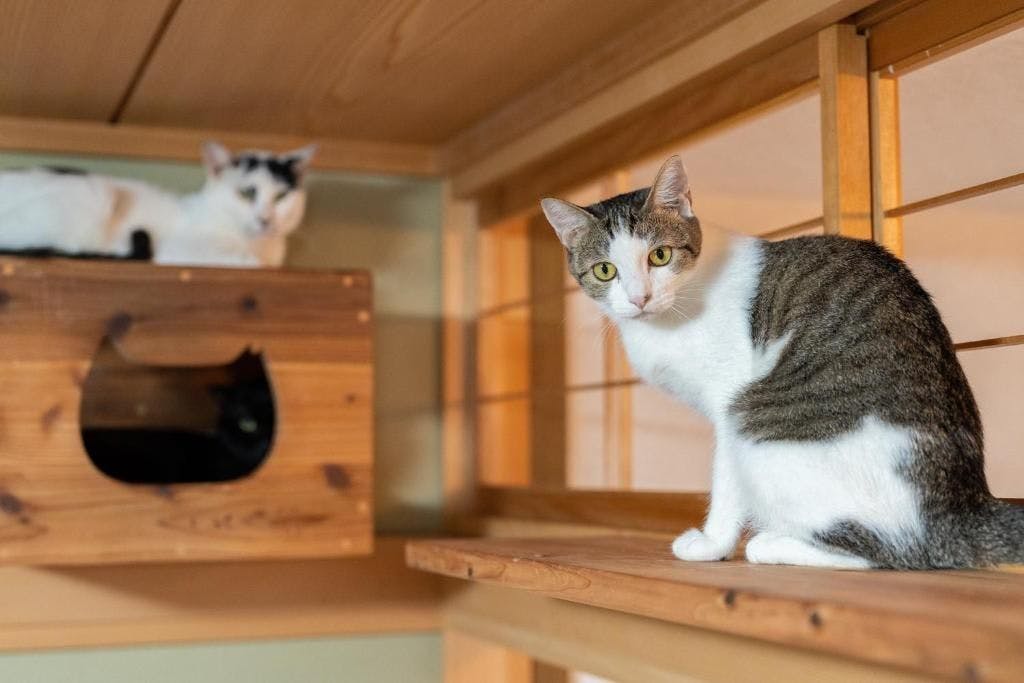 คอนโดมิเนียมรูปแบบที่พักที่มีศูนย์พักพิงแมวที่ได้รับการคุ้มครองร่วมอยู่ด้วย เป็นพื้นที่ผ่อนคลายที่สามารถสัมผัสกับแมวที่ได้รับการคุ้มครอง
