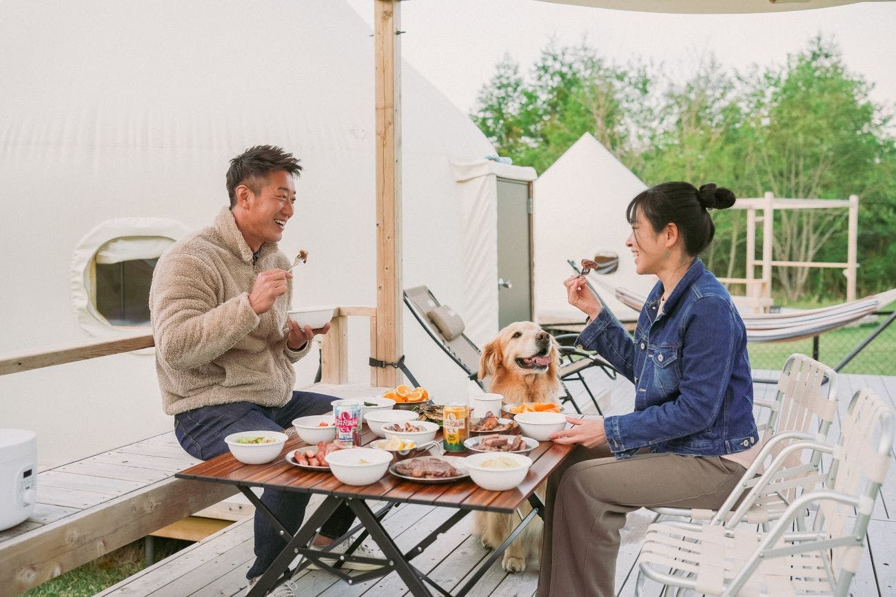 จังหวัดกุนมะ/อากัตสึมะ-กุงDot Glamping คิตะคารุอิซาวะ ตั้งอยู่บริเวณเชิงเขาอาซามะ ท่ามกลางธรรมชาติที่งดงามของคารุอิซาวะ มีสนามหญ้าสำหรับสุนัขให้วิ่งเล่นอย่างสนุกสนาน อากาศบริสุทธิ์และอาหารที่ทุกคนสามารถเพลิดเพลินร่วมกันได้ แม้แต่เวลานอนก็ยังอยู่ด้วยกันทั้งหมด สัมผัสความรู้สึกปลอดโปร่งในธรรมชาติ และสร้างช่วงเวลาที่น่าจดจำกับสัตว์เลี้ยงแสนรักของคุณ
