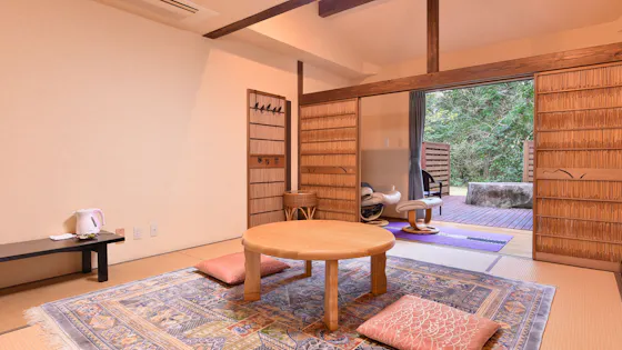 We stayed with our pet.The staff were very kind, and we were able to relax.Both the taste and portion sizes of the meals were just right for us as a couple.It was a shame there was no open-air bath in the large public bath, but the guest rooms are spaciously set on a large property, allowing us to spend time without worrying about those around us.We would love to stay again.Thank you very much.