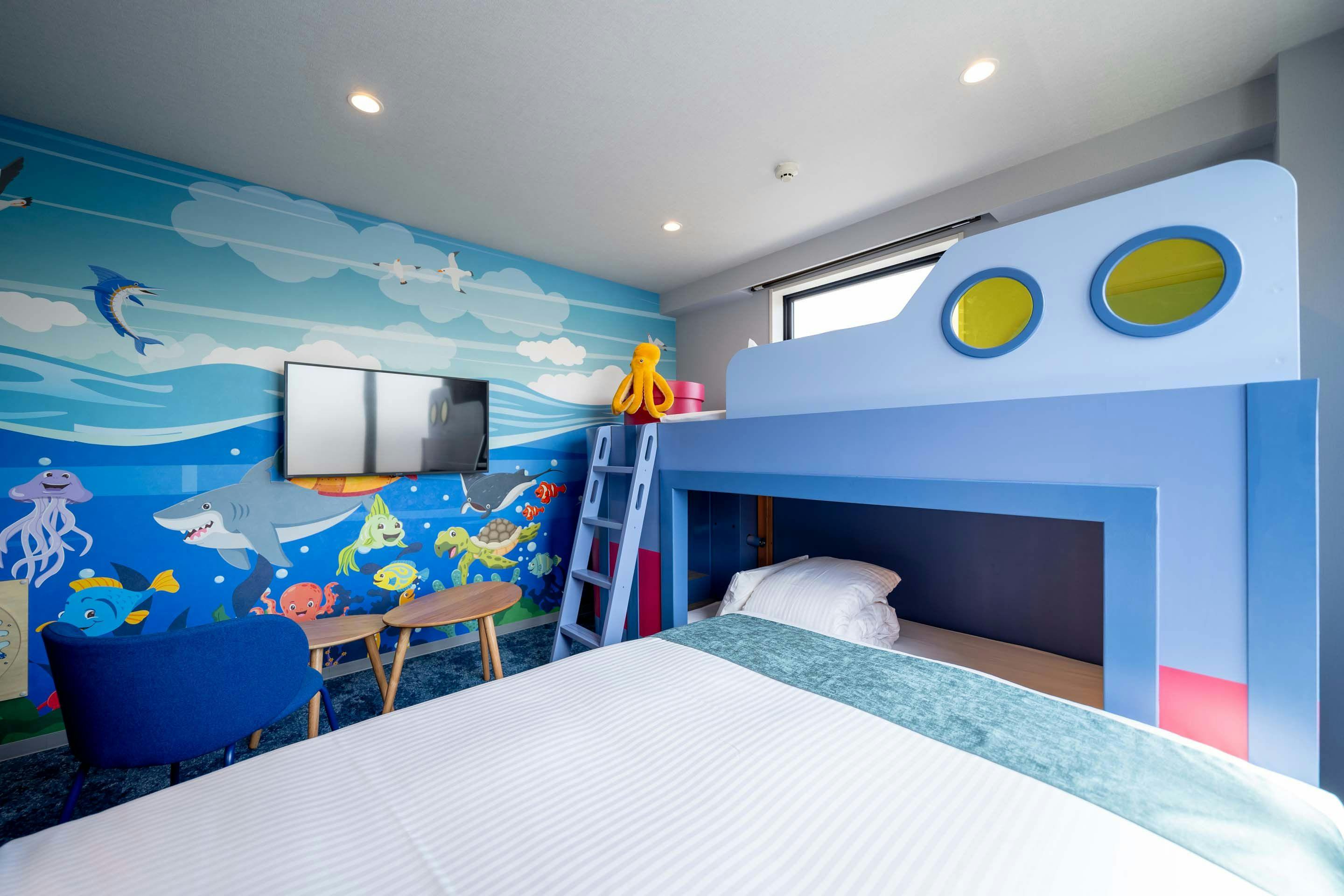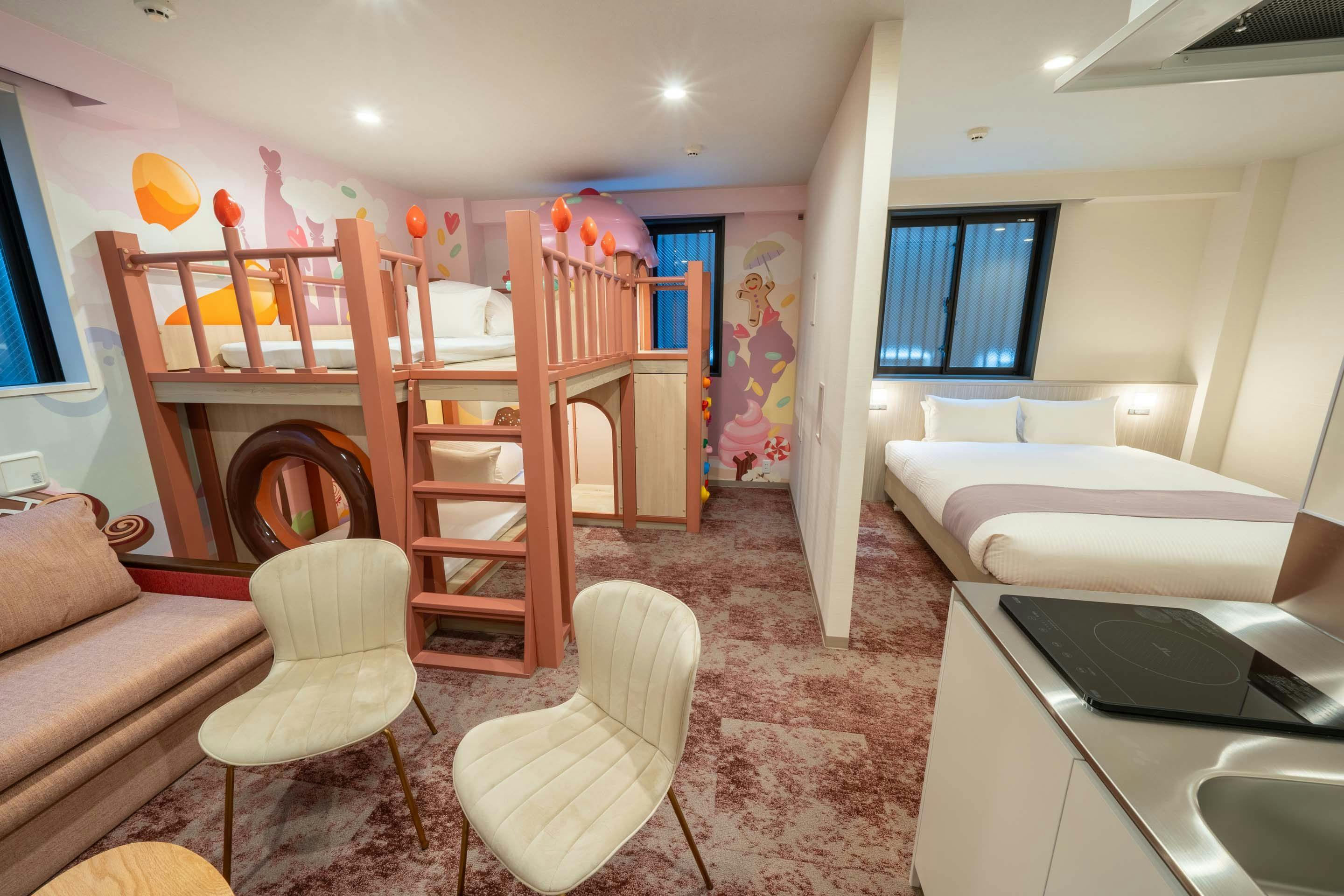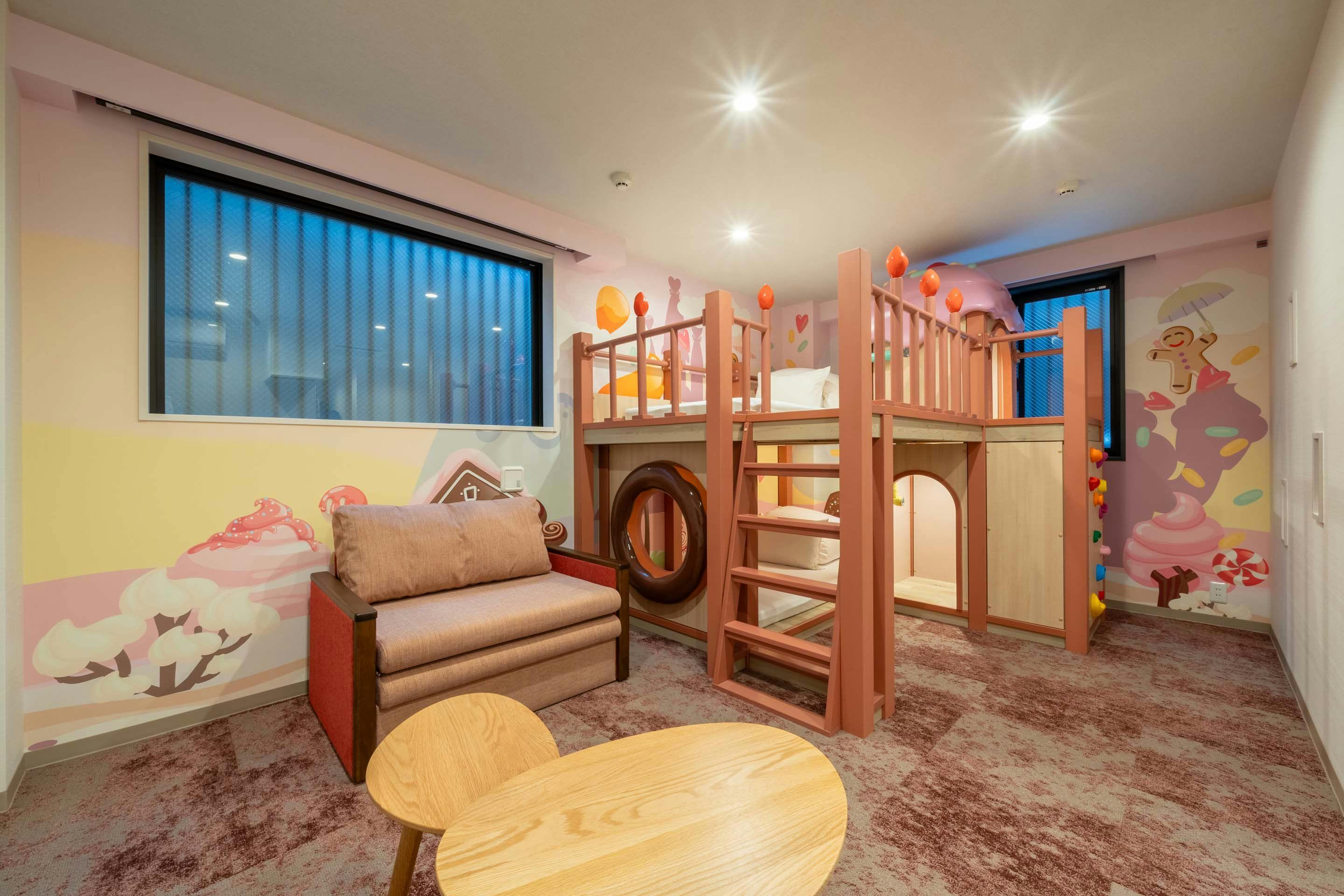 ห้องพัก “ป่า” ให้คุณเพลิดเพลินกับช่วงเวลาแสนสนุกราวกับได้จัดปาร์ตี้ร่วมกับเหล่าสัตว์น้อยใหญ่ ส่วนห้องพัก “ทะเล” จะพาคุณตื่นเต้นเหมือนได้ออกสำรวจใต้ท้องทะเลไปพร้อมกับสิ่งมีชีวิตในทะเล นอกจากนี้ ห้องพัก “ขนมหวาน” ยังมอบช่วงเวลาแสนหวานราวความฝัน เหมือนหลงเข้าไปในอาณาจักรขนม ห้องพักทุกห้องมีเตียงสองชั้นที่เปลี่ยนเป็น “ฐานลับ” ได้ พร้อมลูกเล่นมากมายที่กระตุ้นความอยากรู้อยากเห็นของเด็ก ๆ เช่น ท่อโทรศัพท์สำหรับกระซิบคุยกันระหว่างชั้นบนและชั้นล่าง และผนังปีนหน้าผาจำลองขนาดเล็ก เป็นต้น
