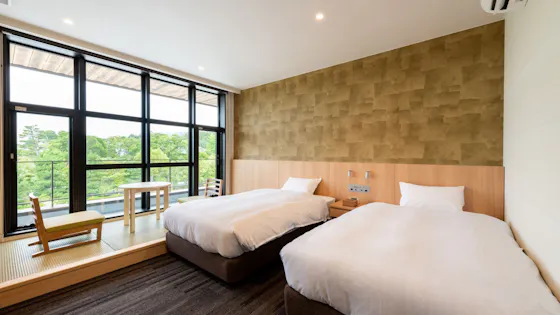 The Room was new and clean, and although it seemed fully booked, it was quiet and comfortable. We were grateful that samue loungewear was provided, but both sets were about size M, so unfortunately my husband couldn’t use them. It would be even better if larger sizes were available. The bed and pillows were very comfortable, and the large public bath was clean, so we were able to rest well. We would like to stay again. Thank you very much.