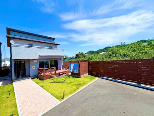 วิลล่ารีสอร์ทให้เช่าที่ตั้งอยู่ในทำเลที่ยอดเยี่ยมพร้อมวิวชายหาดฮิรัตสึนะที่มีชื่อเสียง