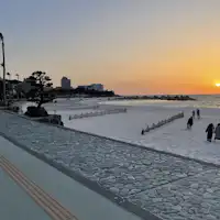 หลังจากจอดรถแล้ว สามารถเดินไปหาดชิราราฮามะได้ทันที (เดินประมาณ 3 นาที/ประมาณ 350 ม.)