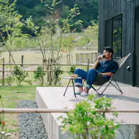 ที่พัก山座熊川มีบ้านพักแบบเคบิน 3 หลัง ที่สามารถเข้าพักพร้อมสัตว์เลี้ยงได้