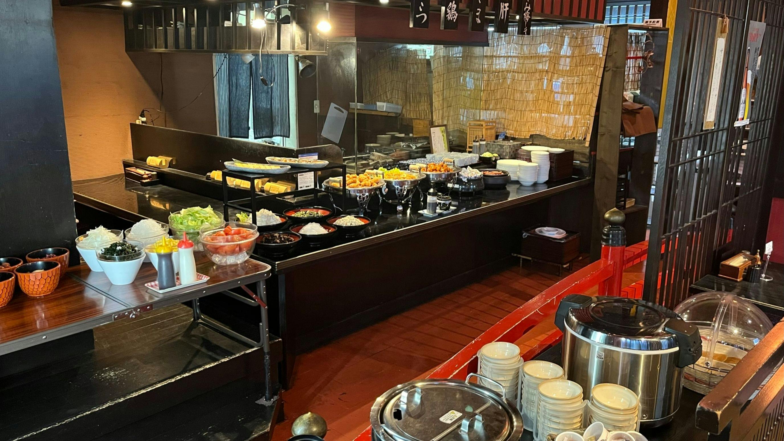 | อาหารเช้า | สไตล์ บุฟเฟ่ต์ญี่ปุ่นและตะวันตก เวลาเปิดทำการ 6:30~9:30 (เข้าครั้งสุดท้าย 9:15) ราคา บัตรล่วงหน้า: 1,000 เยน / วันจริง: 1,100 เยน 【เด็ก】 อายุ 0-3 ปี: ฟรี / อายุ 4-12 ปี: 900 เยน ※บัตรล่วงหน้าสามารถซื้อได้ที่แผนกต้อนรับในขณะเช็คอิน ※ราคามื้อเช้ารวมภาษีแล้ว ※เมนูอาหารอาจมีการเปลี่ยนแปลงโดยไม่ต้องแจ้งให้ทราบล่วงหน้า |