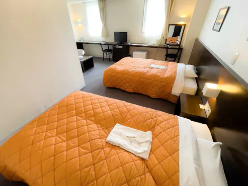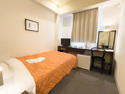 จังหวัดโทคุชิมะ/เมืองโยชิโนะกาวะEverything is self-service, and the entry door unlock code will be sent to you by email.For a moment, I thought it might be spam.At check-in, a sheet of paper with the Room unlock code will be printed out. No check-out procedure is required.The Facility and amenities are the same as a typical Business Hotel.There is a FamilyMart right in front, which is convenient.