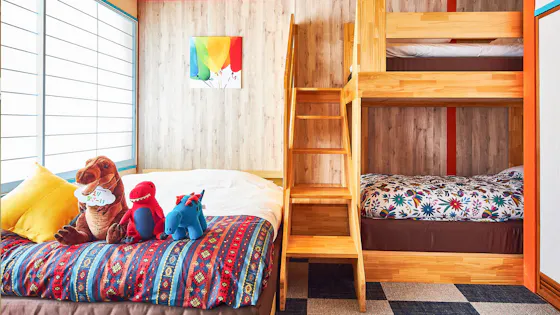 ห้องพักสำหรับ 2 ท่านถึง 11 ท่าน ทุกห้องมีตุ๊กตาไดโนเสาร์น่ารักและการตกแต่งที่สดใสและมีสีสัน! มีทั้งแบบเตียงเรียงกันแนวราบที่ปลอดภัยสำหรับเด็กเล็ก แบบเตียงสองชั้นที่ถูกใจเด็ก ๆ และแบบที่มาพร้อมเครื่องเล่นในห้อง เลือกได้ตามอายุของเด็กหรือสไตล์การเดินทางของคุณ