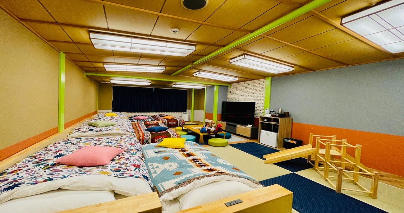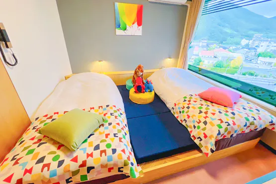 ห้องพักทั้งหมด 83 ห้อง พร้อมสิ่งอำนวยความสะดวกและพื้นที่เล่นฟรีแบบ All-Inclusive! การเข้าพักใช้เวลา 26 ชั่วโมงต่อคืน โดยสามารถใช้บริการภายในโรงแรมได้ตั้งแต่เวลา 12:00 น. ก่อนเช็คอิน และหลังเช็คเอาท์จนถึงเวลา 14:00 น. เพลิดเพลินกับเครื่องดื่มซอฟต์ดริงก์และแอลกอฮอล์ไม่จำกัด รวมถึงสระบอลขนาดใหญ่ ซิปไลน์ คาราโอเกะ ปิงปอง สนามของเล่น เกมโซน และสวนไดโนเสาร์ที่เต็มไปด้วยความสนุก! ห้องอาบน้ำส่วนตัว ซาวน่า และสิ่งอำนวยความสะดวกอื่น ๆ ทั้งหมดให้บริการฟรี รับรองว่าก่อนกลับบ้าน เด็ก ๆ จะต้องพูดว่า "ยังไม่อยากกลับเลย~" อย่างแน่นอน!